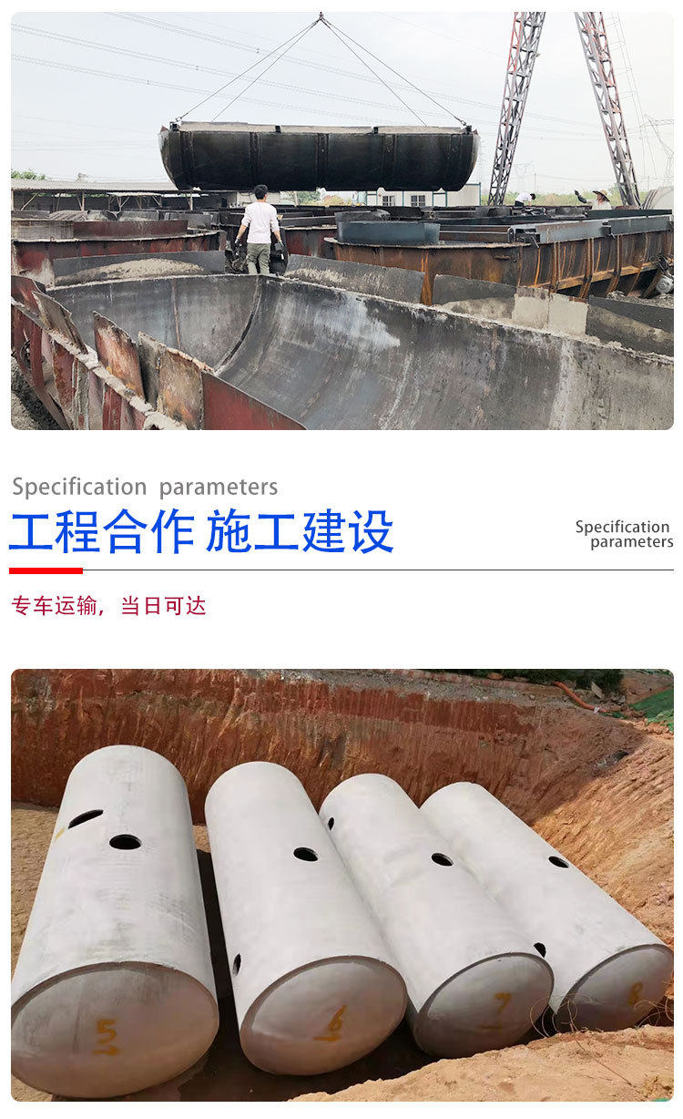 1. 吊装作业前需检查吊装机械、钢丝绳、吊装带等设备的安全性,确认无误后方可作业;吊装过程中需设置警戒区域,严禁无关人员进入,确保吊装安全。2. 接口密封是施工关键环节,需严格检查密封垫、密封胶的质量,确保安装到位、封堵严密,注水试验合格后方可进行回填,必要时进行水压试验(试验压力0.05MPa,保持30分钟无渗漏)。3. 回填土必须分层夯实,严禁使用冻土、石块、建筑垃圾等杂物回填,若回填不实,后期可能导致地面沉降、池体变形或管道接口渗漏,影响使用效果。4. 冬季施工时,需做好防冻措施:混凝土垫层浇筑后需覆盖保温材料(如棉被、岩棉被)养护,避免受冻;接口密封胶需选用低温适用型(耐低温≥-20℃);回填土避免使用冻土,若采用冻土需提前粉碎、晾晒。5. 施工过程中需保护周边地下管线,若发现未知管线,应立即停止施工,联系相关部门确认管线属性与走向后,再制定专项保护措施继续操作。(四)后期维护要求