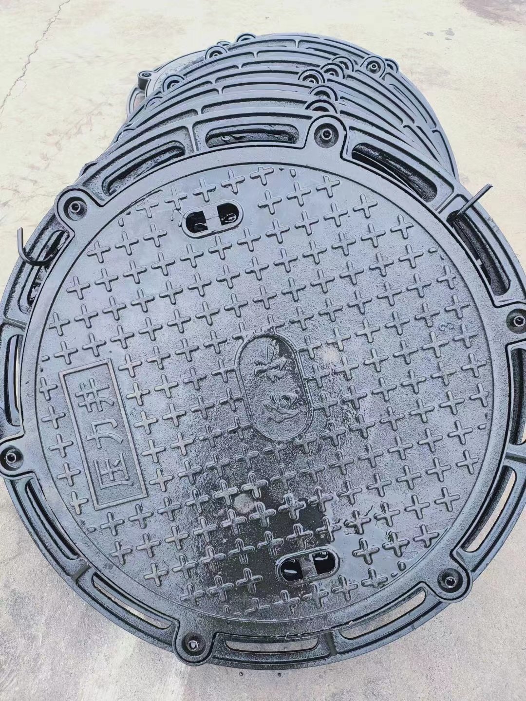- 强耐腐蚀性:河道环境长期潮湿、易受河水(含盐分或杂质)浸泡,因此多采用球墨铸铁材质(部分高端场景用不锈钢),表面会做热镀锌、喷塑或沥青防腐处理,避免生锈或被河水腐蚀,寿命可达 15 年以上,远优于普通灰铸铁井盖。
