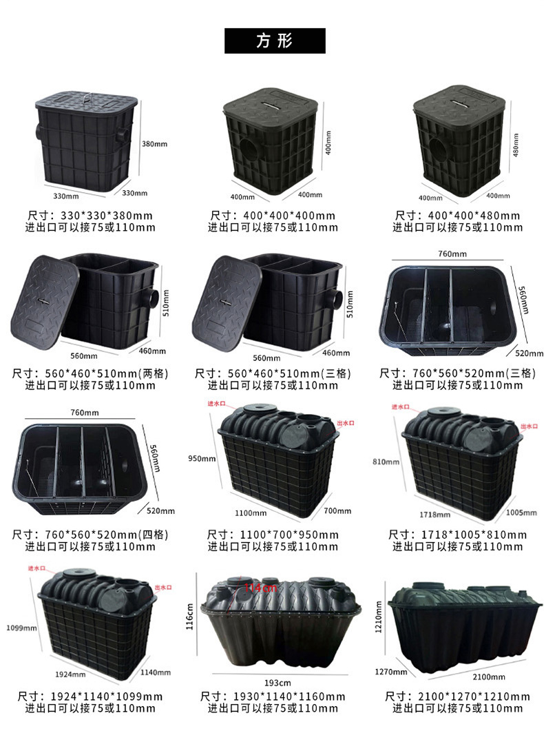 PE隔油池采用耐腐蚀、抗氧化的塑料材质,通过高温注塑成型,具有防渗漏、使用寿命长(可达10年以上)等特点。其结构多为平流式,废水沿水平方向缓慢流动,利用油水密度差实现分离。