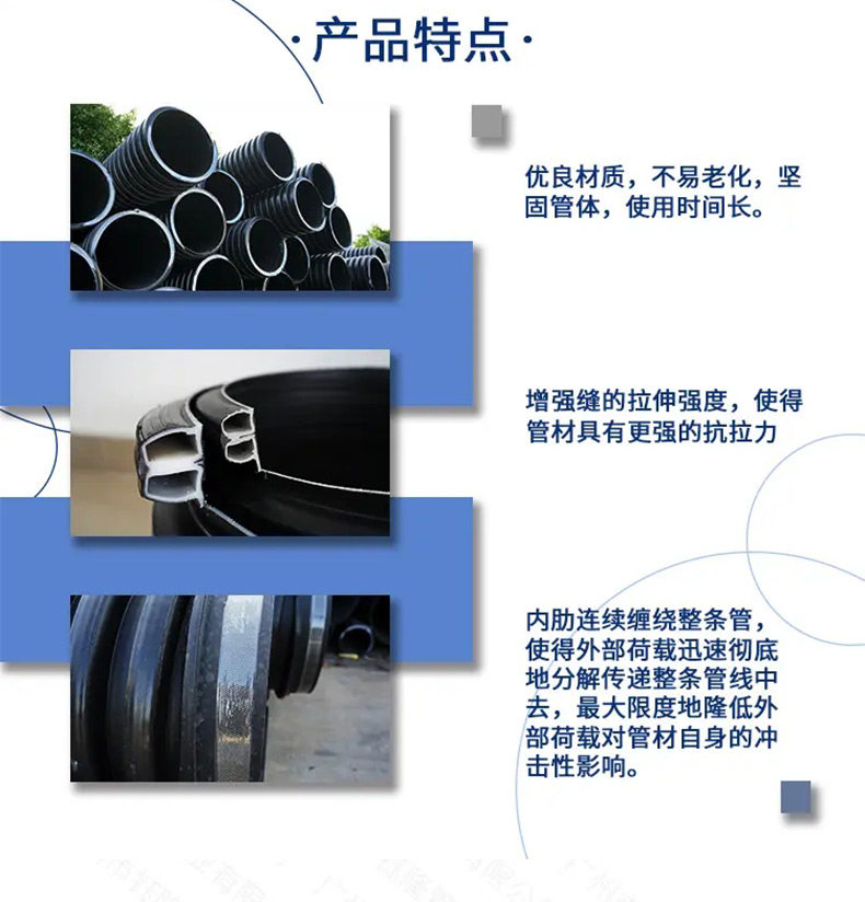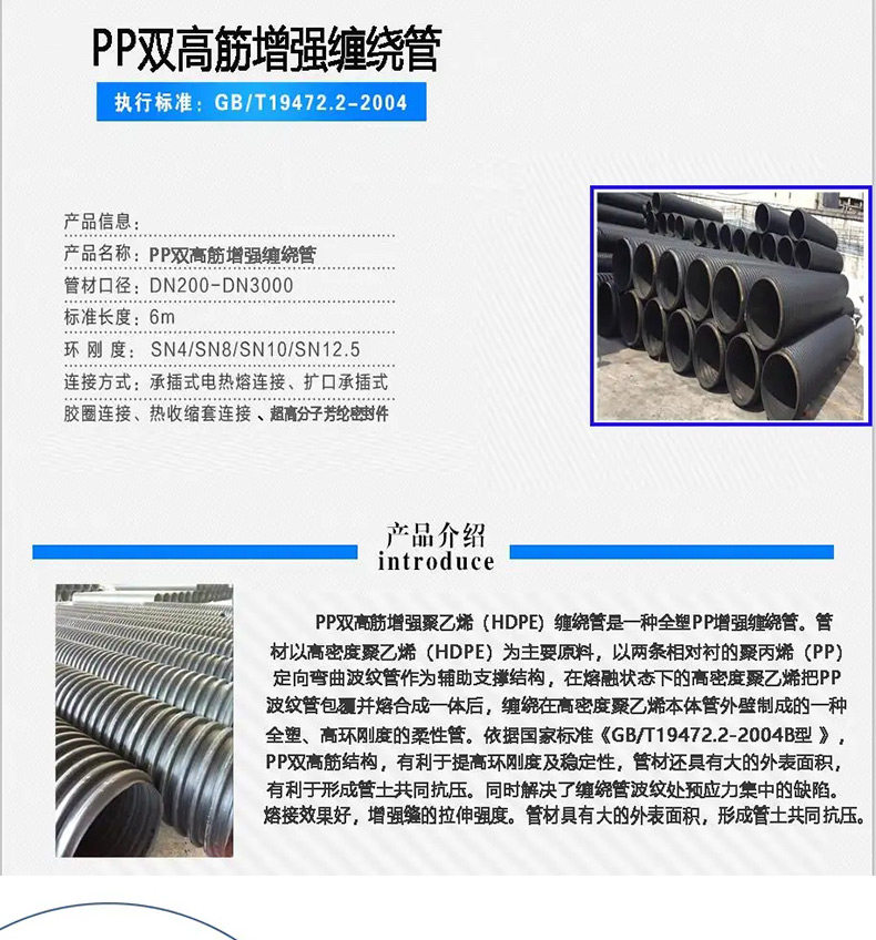 独特的高筋增强结构与改性PP材料的刚性相结合,使管材具备远超普通缠绕管的环刚度和抗冲击性能。在埋地环境中,能有效承受土壤压力、车辆荷载及施工机械碾压,不易出现破裂、变形或蠕变等问题。即使在软土地基或沉降较大的区域,管材也能通过自身的刚性与韧性协同作用,适应一定程度的地基沉降,避免接口渗漏,适用于多种复杂地质条件下的排水工程。(二)超强耐腐蚀性,使用寿命长